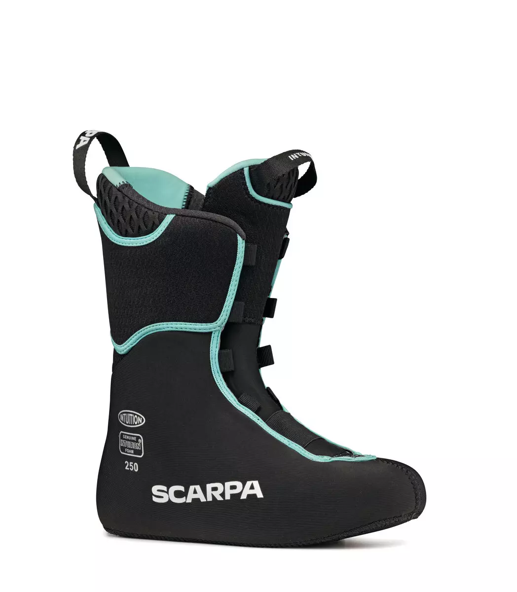 Cross Fit Pro Flex Touring is the thermoformable liner made with Intuition Foam, featuring anatomic tongue construction with an elastic band on the instep. Specific thermoformable heel inserts lock the ankle in place during skiing or touring. Double pull loops facilitate fitting. The fit is touring-oriented and comfortable right out of the box. For a more precise, high-performance fit we suggest thermomoulding before skiing.