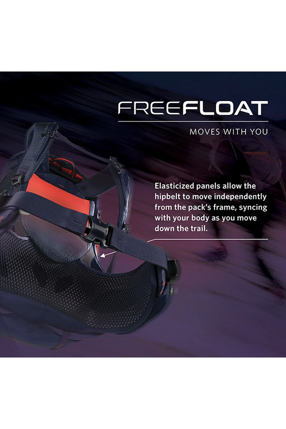 • FreeFloat dynamic hipbelt flex panels that move with the natural movements of your body