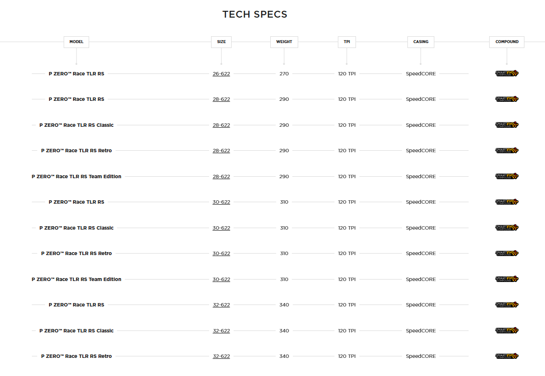 The P ZERO™ Race TLR RS represents the latest addition to the range of P ZERO™ Race road racing tires, made in Italy. It has been developed in collaboration with professional athletes from their World Tour teams to deliver superior speed and grip performance compared to any other tire they have created. This achievement is made possible by the new SmartEVO² compound, formulated with the know-how and latest materials used in Motorsport, ensuring further improvement in grip and handling on both dry and wet surfaces. Additionally, they have lightened the patented SpeedCORE™ structure, featuring a thin, hermetic layer of rubber compound enriched with aramid particles. The combination of these factors has made it possible to create a high-performance tire that is even faster for competitors, but also for those who wish to benefit from the same tech as the pros.