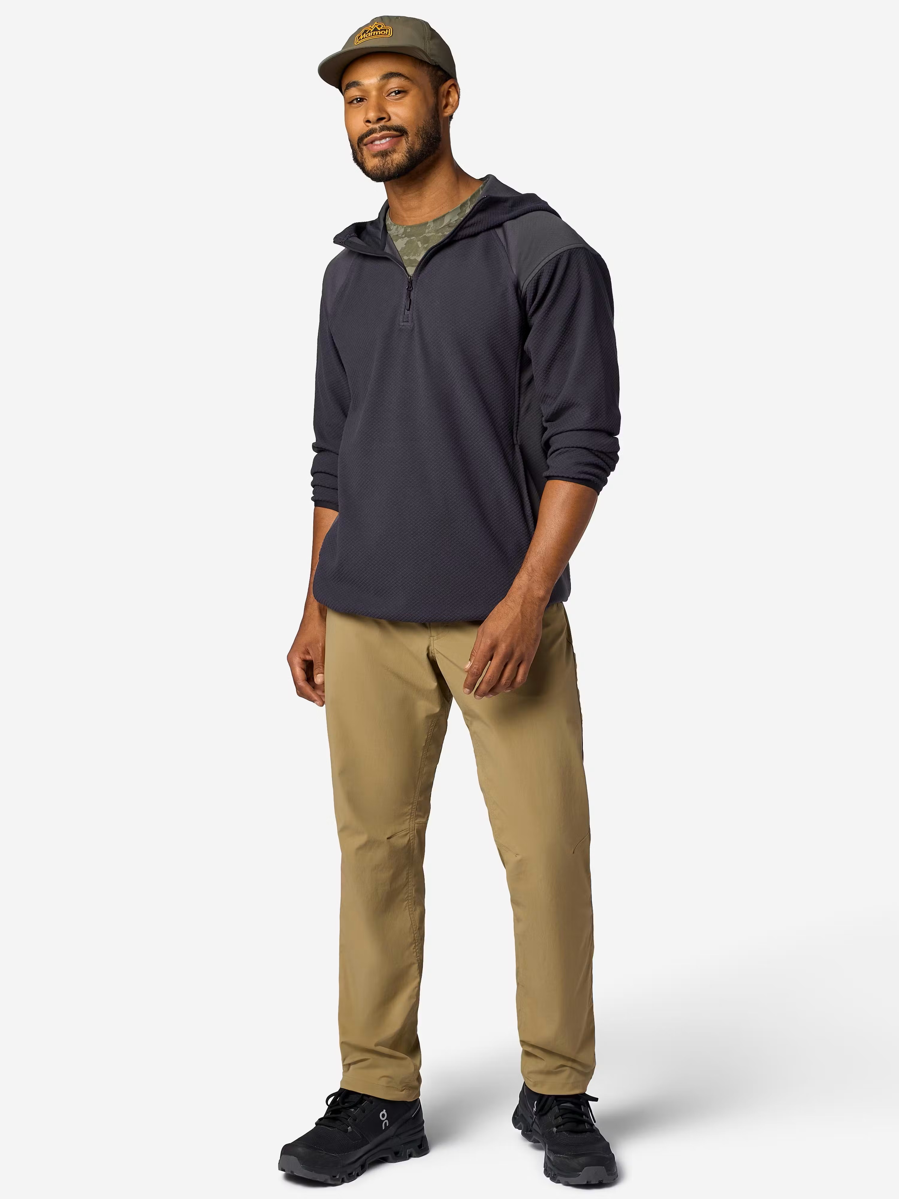 The half-zip design allows easy ventilation and layering, while raglan sleeves provide unrestricted mobility, especially when carrying a backpack. A three-piece hood and elastic-bound cuffs and hem help retain warmth when temperatures drop.