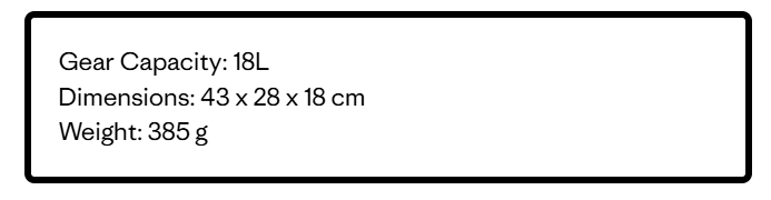 Cinch-forward closure directs the pack volume against your back and away from the back of your head; pack volume is 18 liters