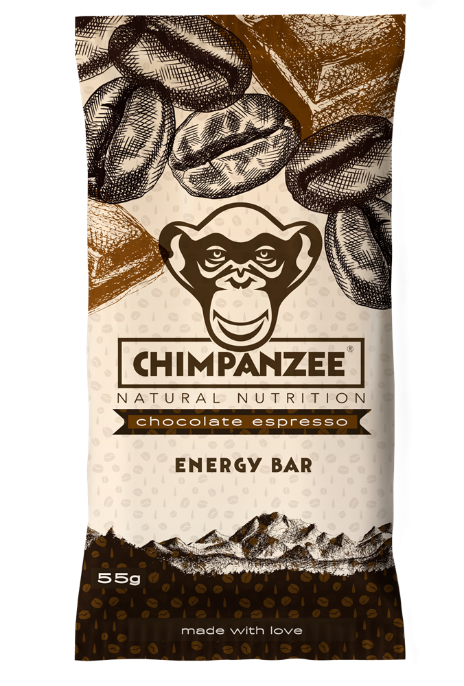Ново поколение енергийни десерти пълни с изненади. Насладете се на енергиен бар с чудесен вкус на шоколад и еспресо. Chimpanzee Energy Bar Chocolate Espresso съдържа високо количество протеинии и фибри и е отличен източник на натурална енергия.