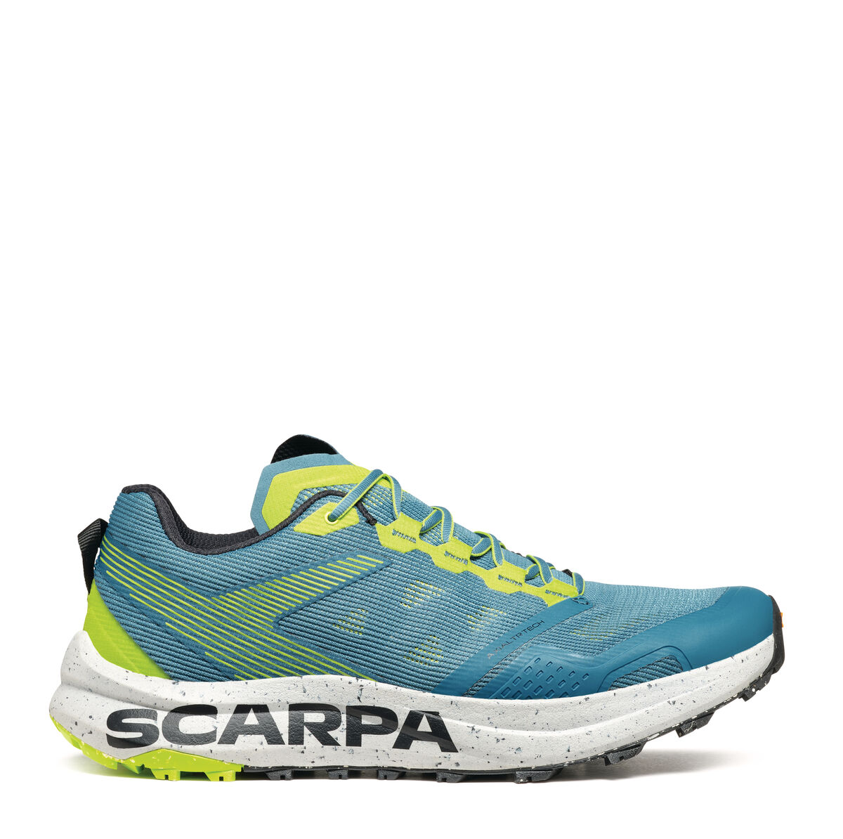 Следващата стъпка в пътуването на Scarpa за устойчиво развитие, SPIN PLANET въвежда нова концепция в категорията Trail Running с горната си част, която е изработена от 100% рециклирани материали, докато EVA междинната подметка е 45% рециклирана, а гумената външна подметка е 30% рециклирана. Идеалните обувки за бегачи, които преследват дълги разстояния по трейл пътеките, благодарение на обема на междинната подметка, предназначен да абсорбира ударите със земята и да осигури защитно омекотяване.